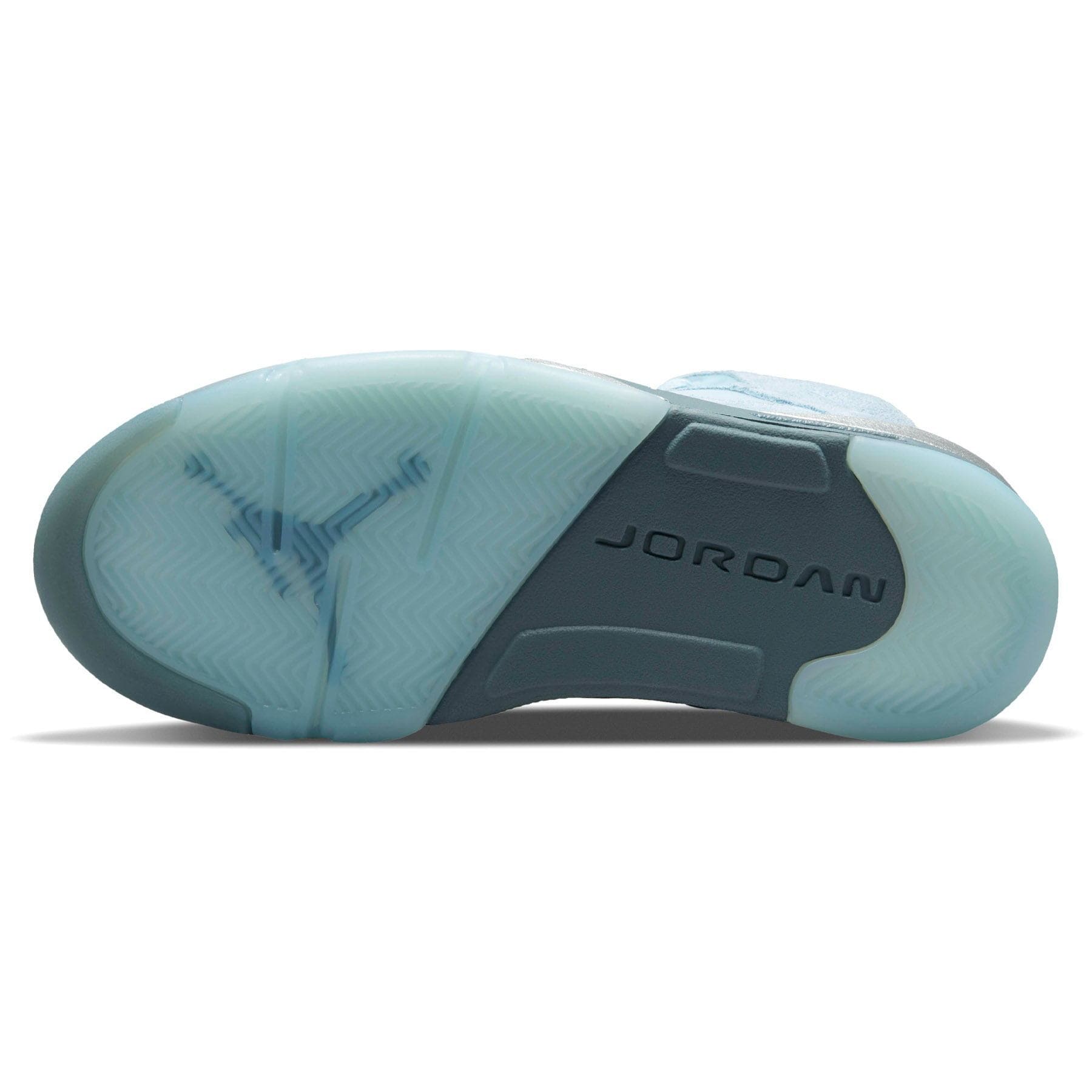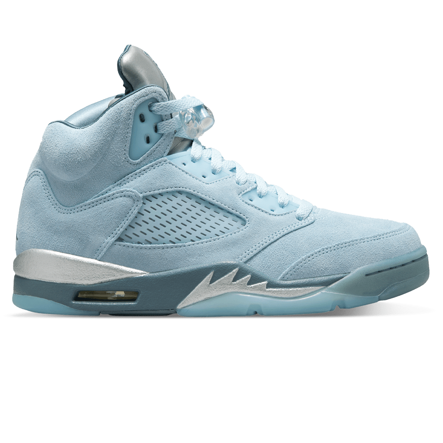 The women’s Air Jordan 5 Retro ‘Blue Bird’ treats the retro silhouette to a vibrant makeover. An energetic shade of blue is executed on a suede upper furnished with standard AJ5 details, including lace locks, molded TPU eyelets and clear netting across the quarter panel. A blue Jumpman is embroidered atop a silver reflective tongue, complementing silver shark tooth detailing on the polyurethane midsole. Underfoot, an icy blue rubber outsole features a herringbone traction pattern for maximum grip.