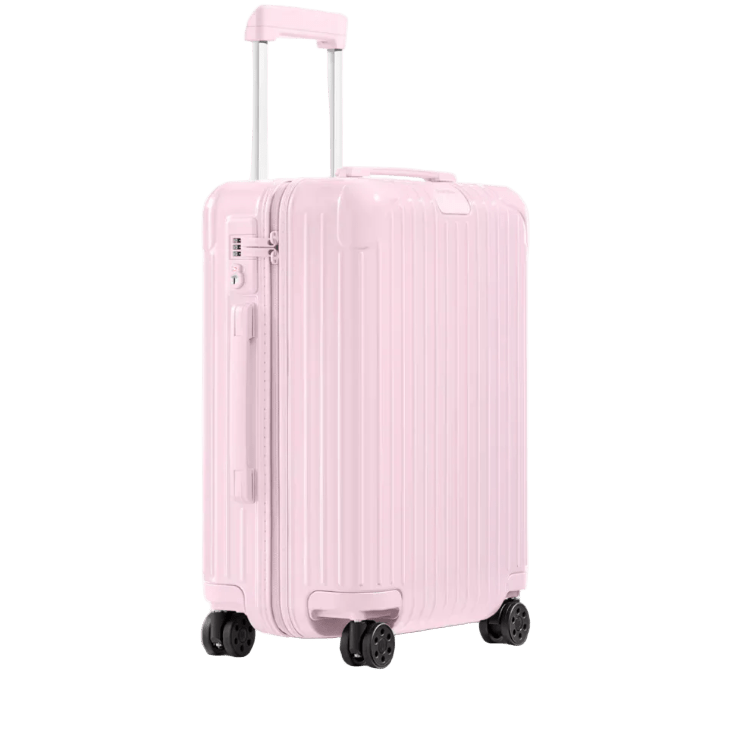 The Rimowa Essential Gloss Ballerina Pink Cabin Case is a chic and durable travel companion. Made in Germany, it features a glossy polycarbonate shell, smooth multiwheel system, and TSA-approved locks — perfect for effortless carry-on travel.